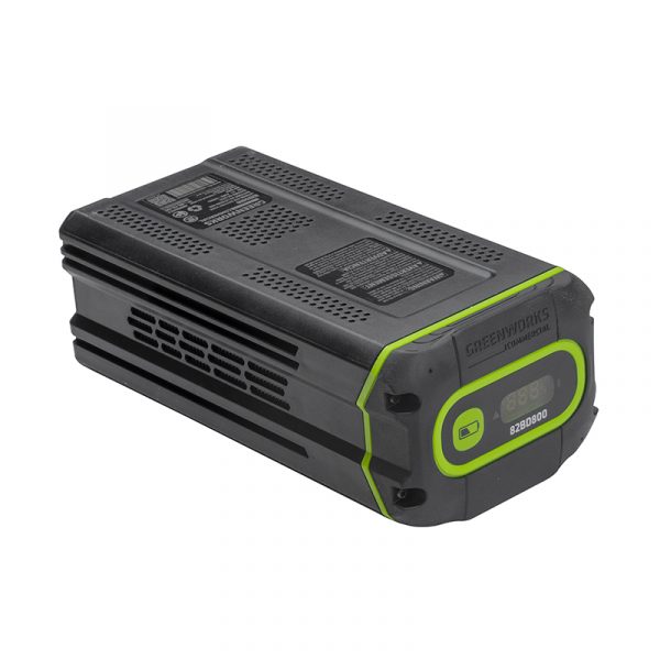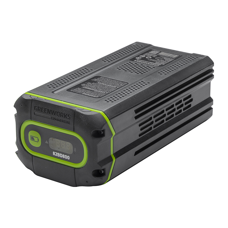 La más potente batería de iones de litio 82BD800 de 82V y 8 Ah proporciona tiempos de ejecución y rendimiento prolongados para maximizar el uso de la herramienta. Cuenta con un indicador del porcentaje digital que indica el estado de carga de la batería en tiempo real (el cargador se vende por separado).